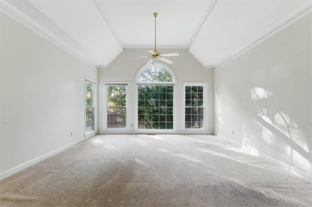 Located within the prestigious, gated St.Ives Country Club and situated on a desirable .5 acre corner lot, this elegant 4-bedroom, 3.5-bath home offers timeless charm and endless potential. This home has it all and is ready for you to create your dream. From the moment you step into the grand entryway, the home's promise is undeniable--its gorgeous hardwood floors, soaring ceilings and walls of windows make this home inviting and ready for you to create your own story. The craftsmanship of this home is seen in every turn from the tray ceilings to the crown moldings and built-ins. The main-level primary suite with his and hers closests, and plenty of space provides a timeless foundation for your vision. The secondary bedrooms are large in scale and offer ample closet space, ensuite and Jack and Jill baths. The flat, usable yard is ideal for outdoor living. An unfinished walk-out basement offers a blank canvas--perfect for adding a home theater, gym, or additional living space. With great bones and a timeless layout, this home is ready for your personal touch. Experience the best of Johns Creek living in this exclusive gated, golf course community. Don't miss the opportunity to make this home truly yours.